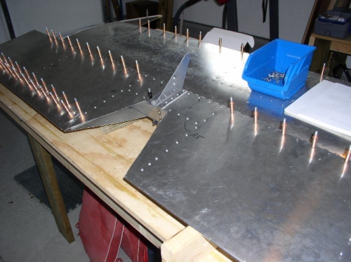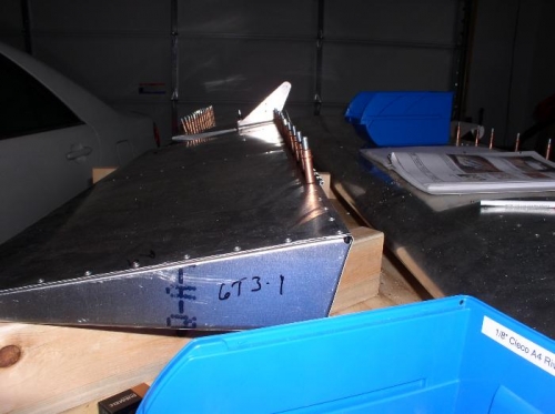 Reassembled trim tab. Riveted all holes except hinges starting from the center and working outboard. Unsure on drilling safety wire holes in hinges. Plan to fit elevator to stabilizer before riveting.