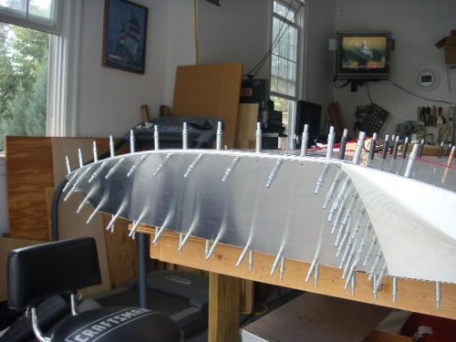 Cut wing tip rear outter skin to shape. Started with rear edge, then top, then bottom and finally the front edge. Tried to make to look similar to left wing but did a better job of cutting at the tangent line of the mounting brackets. Drilled all holes. Found that the 'L' bracket on the wing spar was made too short. Cut a short piece of 'L' material to extend the one installed earlier.