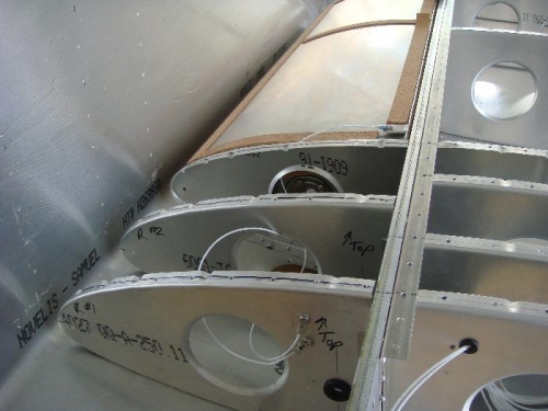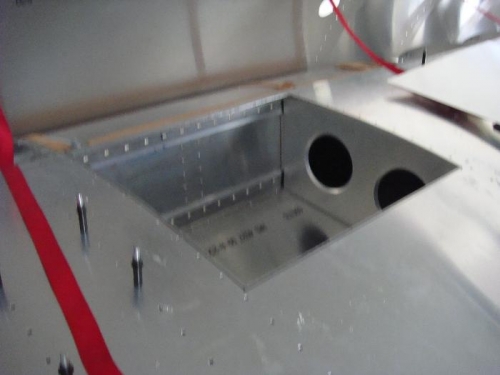 Cut opening for baggage locker and filed sides and spar edge to final size. Drilled holes in hinge. Deburred and filed hinge ends to smooth.