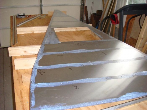Finished deburring. Applied anti-corrosion coating to inside side of bottom skin along all rivet lines.