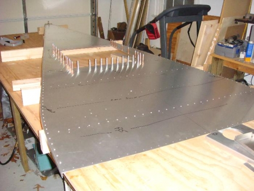 Reassembled rest of pieces. Flipped skin over to rivet. Began riveting at longeron splice and worked forward. Then did the front 2 cross pieces (all the A5 rivets). Then repeated with the A4 rivets starting at the splice and working aft before doing the cross pieces. Left the forward and side 'Z' piece around the opening un-riveted to allow for the hinge and door fitting.