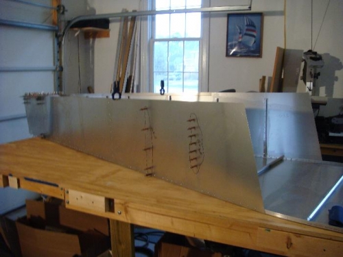 Finished riveting what I could based on the Homebuilder.com video. Left the HT mounting brackets, the rudder cable fairings, the upper longerons, forward 2 'L' brackets on both sides and all of the top of HT channel unriveted but left clecoed in place.