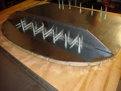 Dismantled front side to work on back. Trimmed rear firewall reinforcement 6B7-2 to fit. Marked rivet line 10mm from top flange. Lined that pre-drilled holes and lined up the centerline. Drilled and clecoed in place.