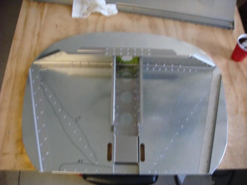 Started on cabin floor. Trimmed heel support to fit. Aligned and fixed with duct tape. Back drilled through pre-drilled holes.