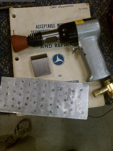 Bucked 50 rivets for practice, about a third of them back-driven. Need to have scrap examined by John Bolding.