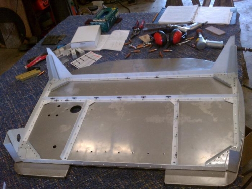 Fwd fuselage floor directions did not mentioni riveting together the ribs and bulkheads before riveting the assembly to the floor. I am now stuck with trying to find a way to buck or squeeze some rivets that should have been a simple process. Perhaps I don't have the right tools. I do not yet own any offset rivet sets, and this might be a necessity now and in the future. Pops and I are talking about using a hammer to bang 8 of them. We'll see.