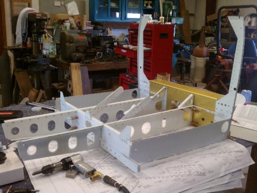 I made a number of errors today, mostly riveting holes prematurely, which required drilling out a few more than I should have had to. I find that when I have many hours of the same thing it becomes difficult to not become too methodical and stop focusing so much.