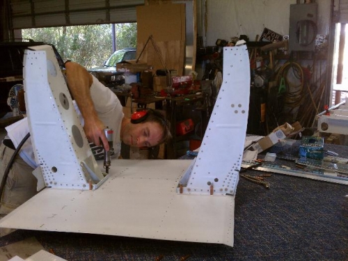 Borrowed Jim Kubik's 3x rivet gun and right away realized I wanted one. Also borrowed another offet 1/8 rivet set and was able to finish the fuselage floor riveting of the intercostal and floor ribs.