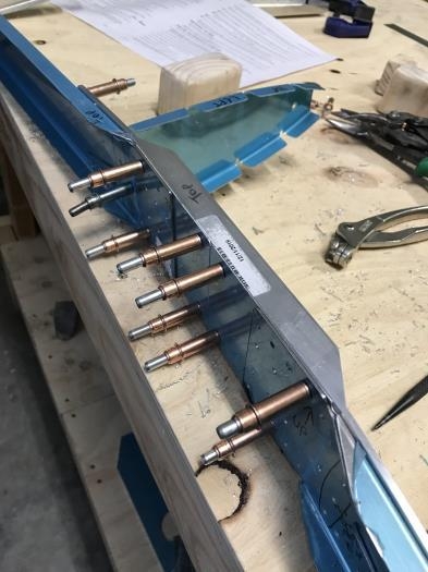 Bought the correct files and completed bends of the spar and doublers to 6 degrees. Then drilled out the holes to teh required number 30 and attached all the leading edge ribs. Inboard ribs required trimming as per the manual to fit beside the extruded aluminium braces.
