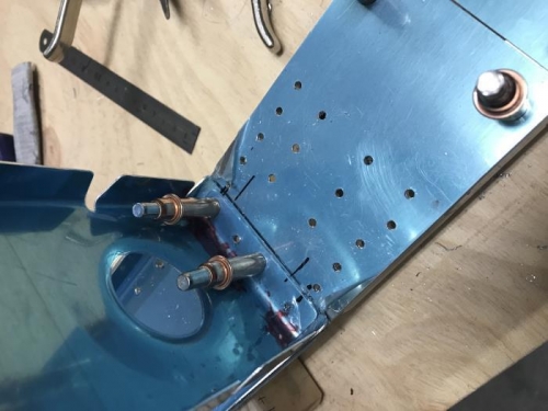 Also worked on the very tight edge distance holes where HS00005 meets the front spar. Super easy to mess it up but managed to get it right. Used a caliper to measure the edge distance of one hole according to themil spec guidelines on the Vans website and in tolerance (just) by just over 1mm! Worked on removing the conflicts of the flanges of HS702 with HS00005.