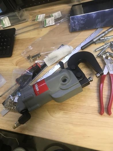 A few days earlier than advised the Isham RV tool kit arrived! Lots of fun unpacking all the goodies and quite a few that i have no idea how to use yet!!! Started on the RV tool kit box with Ethan to practice dimpling and riveting.