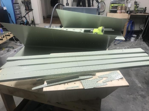 With all the parts deburred, sanded edges and scotchbrited plus dimpled it was time to degrease and clean the parts for spraying. For the spraying I used a PPG Protec 2k primer with a hardener and reducer in the ratio of 4 : 1 : 10%.