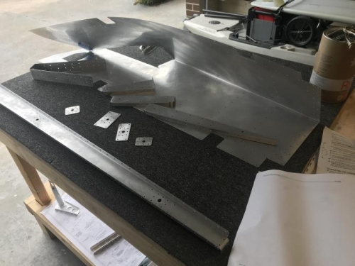 Lots more time spent deburring the elevator skin and skeleton. Three hours later all of the deburring is done on the skin, main skeleton parts and dimpling on the skeleton but the skin still needs to be dimpled. Roughed up all the parts with scotchbrite and edge finished everything too.