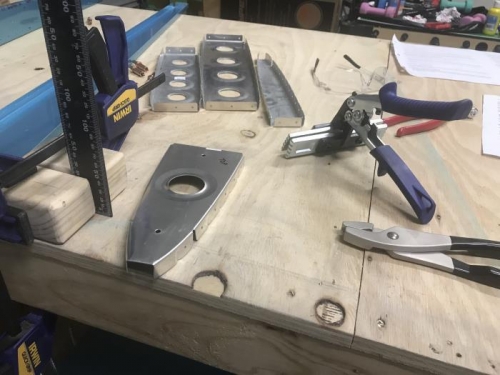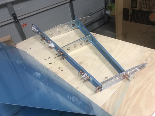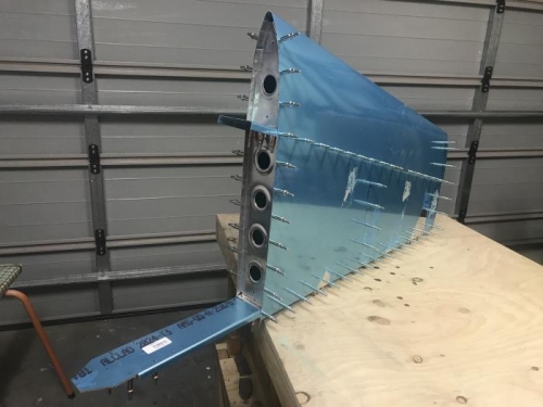 Made scary speed of progress today with the VS ribs all fluted, edge treated 90 degreed then assembled with the connecting points with a 30 drill and then clecoed on the skin. Enough for one day and will drill to size the 40 holes in the skin tomorrow hopefully.