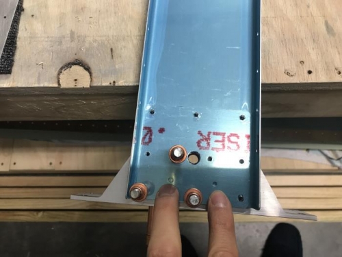 Feeling crap today but decided to do a little work on the rudder skeleton. Added the nutplates and drilled out all the spar web holes to full size plus finished 703 to 713 drilling to final size. Fibreglass fairing does not look like too bad a fit and with a bit of wokr should fit nicely.