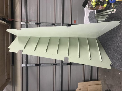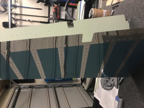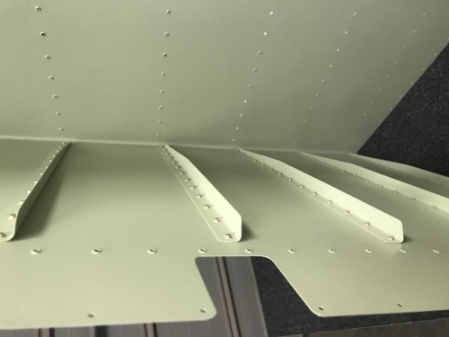 No much to say here but kept on back riveting the rudder stiffeners. Amazing how much strength and ridigity the stiffeners bring to the skin. 3/4 of the way there.