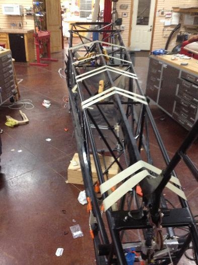 Prep and install top stringer, Prep and install front stringer, Prep and install fabric spacers. Perform Log and Inspection sheet fuselage #7.