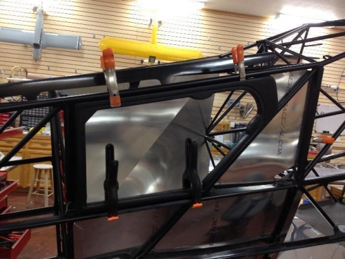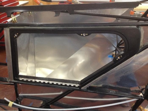 Fabricate and install door assemble, Mount door, bond door to frame, install baggage door extensions, install rudder cable fairleads inside compartment, baggage door fasteners, blend door frame with feather-rite to frame. Prime and paint to match