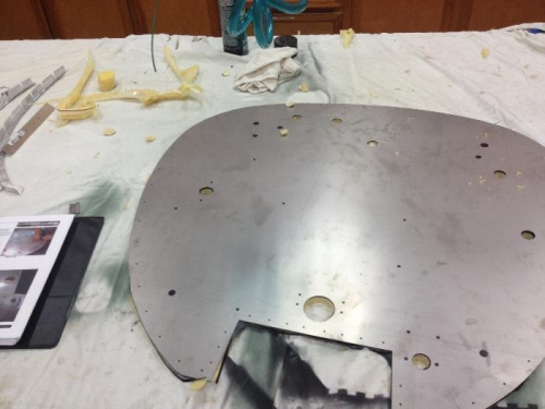 Glue Vinyl onto firewall. Cut out holes and penetrations.