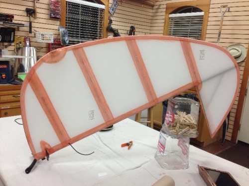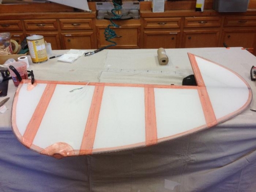 Poly Brush rudder reinforment tape, finishing tape and brush in place.