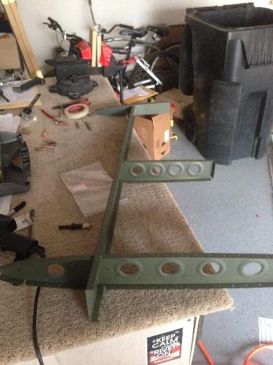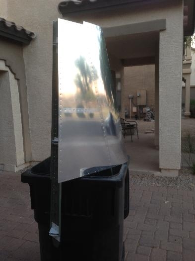 The rear spar assembly was clecoed together including the rudder hinge brackets. The holes attaching the ribs were taped over to prevent inadvertantly putting a rivet where its not supposed to go yet, and then everything was riveted together per the rivet layout on the plans. Then the ribs were riveted to the front spar. The skin came next. Starting at the intersection of VS-707 and Vs-702 I riveted towards the tip, then to the root, then along VS-707 starting at the front and riveting towards the rear spar. Once this was done the rear spar assembly was installed and riveted together ending with the blind rivets attaching the rear spar to VS-707. This was by far the easiest assembly of the project so far.