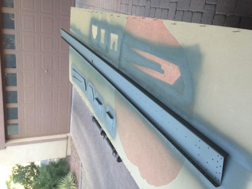 The rear spar, rear spar reinforcement fork, and the three rear spar doubler plates were prepped by deburring the edges. THe W-707E and W-707F doubler plates were clamped in position to the rear spar. These doubler plates were then match drilled and clecoed to the rear spar. The Holes for the aileron pushrods were traced and drilled out. To do this I initially used a unibit and then used a rotary tool to grind and polish the edges to specs. I then clecoed W-707G, and W-707D to the rear spar channel and match drilled all the holes to final size. Everything was disassembled, deburred, dimpled, countersunk and primed.