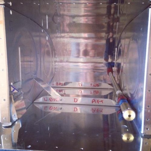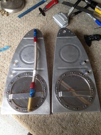 I spent today drilling the holes out for the left and right tank access covers and also the stiffener rings that goes on the inside of the access holes. This stiffener ring also has platenuts attached to it. The stiffener ring was drilled out for the platenuts, everything was deburred accordingly and the platenuts were attached. I also fabricated an anti hang up guide to sort of form a bridge over the access plate nutplates. This was simple to fabricate and was deburred and riveted onto the stiffener ring. There is a cork gasket that goes under the access cover and will seal the rivets attaching the platenuts so these rivets dont require proseal. I will put a smear of proseal between the gasket and the access cover and between the gasket and the inboard rib just to be extra sure it wont leak. The cork gasket is cheap enough to just replace if access is ever needed inside the tank.