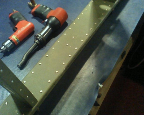 Back riveted all flush rivets. completed rear spar riveting along with hinges using the squeezer. It was easier to use the gun and bucking bar for the ribs and front spar assembly. I had forgot the lower nose rib had to be riveted with the base rib at the same time so I got some rivet removal practice.