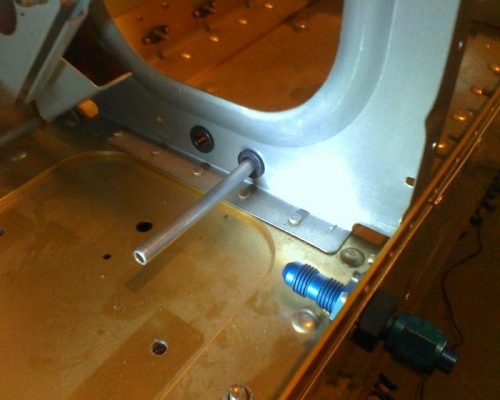 I should just leave these access panels off. Used my new tube bender and my $112.00 flaring tool but it is very high quality and did a very nice 37' flare. I had bought a pipe cutter rather than use a hacksaw but you have to reopen the hole a little when your done and then bebur it, and a little scotch brite to smooth the edges. A step drill to 7/16" cut the hole through the skin and spar nicely to fit the tube fittings . Even after removing the bell crank assembly it was a tight fit with the tools inbetween the wing ribs.