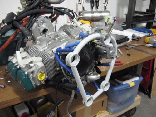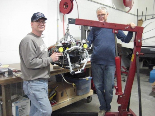 Install engine mount,cooling shield, mate engine t