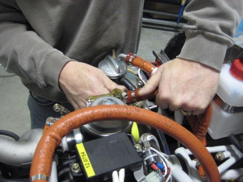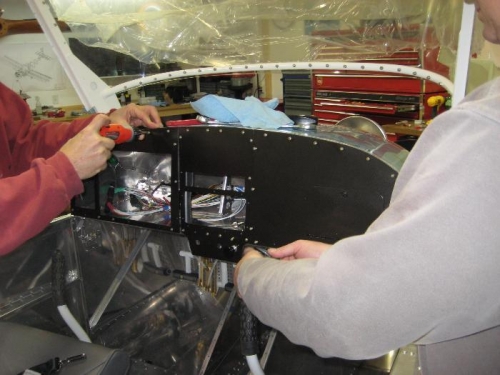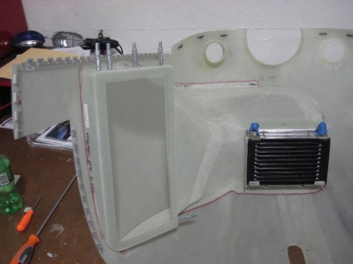 Prepare air duct for fibeglass, oil hoses, panel w