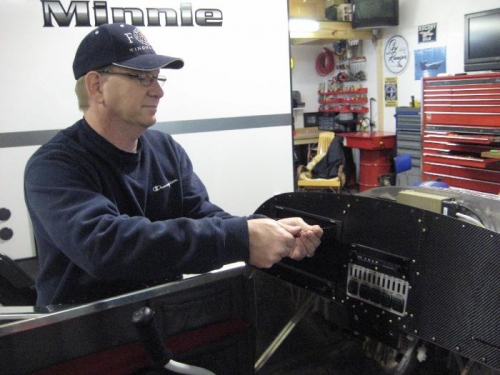 Dan does ADAHRS pins in sub connector tailcone. Tight fit!