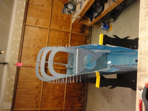 I have not posted lately as I have been working 10 minutes at a time. I clecoed the bottom and side skins on. I have to wait for a new F-712 to arrive before I go any further. I also measured and cut the longerons. Next step is bending and I am still looking at he plans, trying to make sure I get these right. Maybe I will work on the center section for a while.