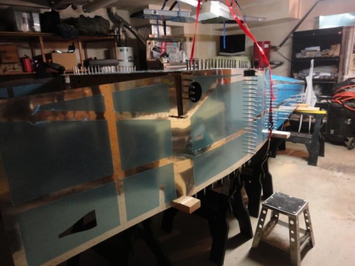 I have not posted lately because I have been frustrated. I installed the longerons and join the center and aft sections four days ago. I have been trying to get the foward side skins to line up since then. I spent a few minutes each night until my blood pressure would rise, then wisely walked away. Well tonight Jake and Michelle and some tie downs helped me get the skins clecoed on. Ran out of #30 clecoes