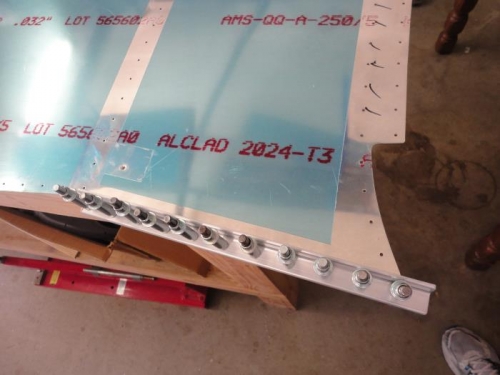 I called Van's, still confused about when to install F-623 corner ribs. they told me it was OK to go ahead and rivet them in. I think he was just telling me what I wanted to hear. I obviously cannot put some of the rivets in, as they are common with the side skins. I also made the conical bend on the right side skin. If you look at image 3 you will see the foward end is mishaped. This is because of a cleco pulling out during the bend. this is an easy fix and the rest of the bend fit perfectly. When I do the left side I will use a doubler to keep the edge with the holes straight. I purchased some better saw horses today. the first set was plastic junk. When will I learn? "always buy the best and you will never be disappointed."