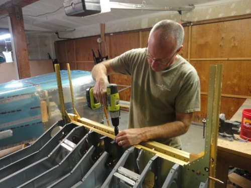 Just finishing some details before I re attatch the center section. The tops of these ribs had not been riveted. The ten rivets on the foward F-704 need to be countersunk as they will be double flush to clear a bracket.