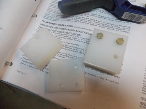 I finished mounting the gascolater doubler. I also mounted the heater valve and sealed with 3M fire block. I started the canopy hinge blocks.