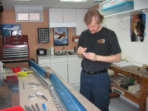 In today's session I match drilled the aileron skins to the spars, ribs and counterbalance pipe, see image 1. Then I disassembled all components and position engraved each as well as starting the deburring process, see image 2 and 3.