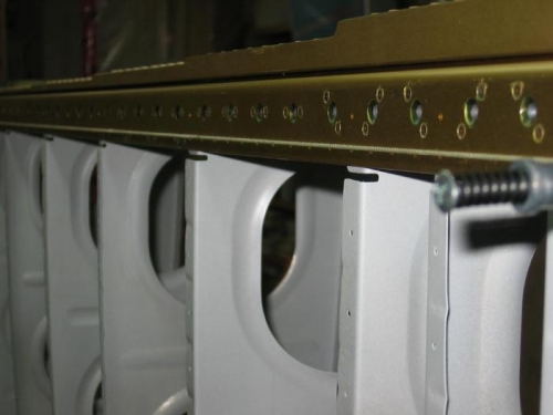 Today I used the spar jacking technique called for in the construction manual to take the sag out of the spars while they are in the assemble fixture. I used some mason's string stretched along the forward spar flange rivet hole line. Image one shows the mason's string just under the anchor nuts on the spar flange. After that I cut from the supplied 10 x 48 inch stock sheet the wing walk doublers, see image 2.