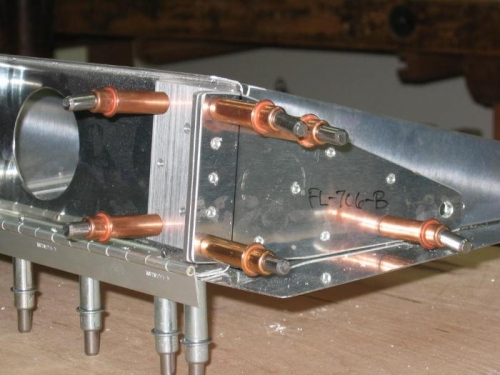 On the inboard end of the flap where the flap actuation control rod attaches the end rib and spar have a plate and angle attached for greater strength. After manufacturing the angle from stock and bending the plate to the required 6.3 degrees in Saturday's session I positioned and match drilled the angle and plate to the spar and end rib. I also drilled the plate for the control rod attachment anchor nut, see image 1.