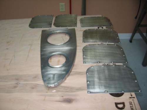 With all flap match drilling, deburring and edge finishing completed I cleaned, abraded and alodined both left and right flap components as well as the lower wing access panels and the right wing leading edge joint plate rib.