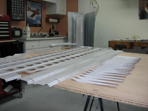 I started the day by cleaning, abrading and alodining the left wing upper and lower, inboard and out board wing skins. Then later in the day I primed all the parts I prepared yesterday and today.