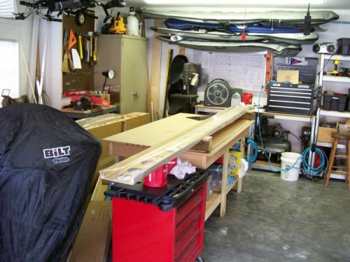 Completely finished left wing spar and cleaned up the shop. Modified the shipping box to a shorter length and found a place for the longerons behind the longboard on the wall. Stored the finished spar in the shortened crate and got it behind the workbench. Started the right spar by attaching the tie down bracket and half the tank attach plate-nuts. Lots of plate-nuts.