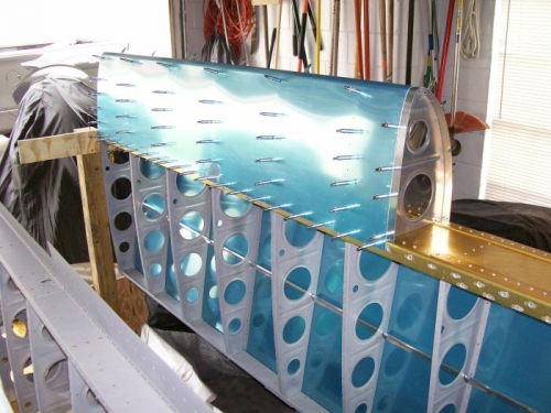 Started work on the R. leading edge. Deburred, fluted abd straightened all the ribs The clecoed to the front spar..