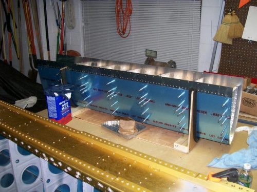 Counter sink skin at baffle. Drill to size #19 tank attach holes and splicde plate.Drill and counter sink brackets for nut plates. Cleaned and primed brackets and riveted nut plates. I ran out of nut plates and found that I had used them on the inboard tank rib for access plate. Drilled rivets out to salvage nut plates and finished brackets. I will need to replace the nut plates with the correct ones.Riveted nut plates to spar at inboard tank bracket.