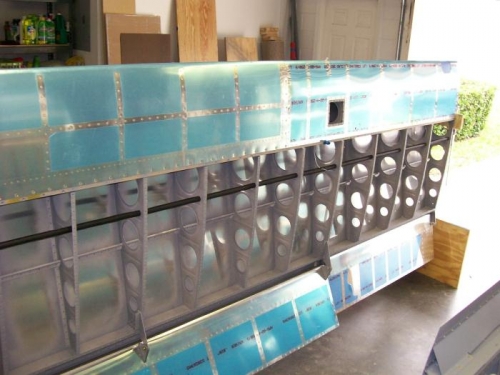 Worked on the left wing landing light. Just as I was installing the lens for the last time I cracked it. I used the lens for the other wing to finish this one. I will order a new lens for the right side before I work on it. Sterted to deburr the remaining flap parts and dimple ribs. Cleaned all the parts and primed. Also cleaned and primed the leading edge skins. While I had the left wing on the stand I pressure tested he tank. I did not get a good pressure test the last time and didn't get a good test this time. This tank has a leak that I need to find. Started assembly of the righjt flap. Riveted the forward ribs and hinge brackets to the spar. Clecoed the top skin to the spar and clecoed and pop riveted the forward skin to the front ribs. Tomorrow I will be riveting the skins to the spar and ribs.