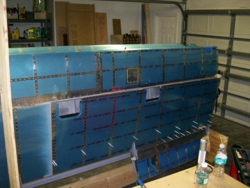 I didn't hear from Chris RV-7 last night or today so I am on my own with the bottom skins. It seems like blind reaching some of the inside areas would be a problem. Also I worry about the order so that they can all be reached. All the other websites kinda leave off the order. I decided to get started as it won't be long before my fuselage kit shows up and I need to get these wings in storage. It was much easier than I expected. I worked on the inboard skin at the rear spar first and moved toward the front spar about four rivets per rib at a time. When pulling the skin out for access got tight I was able to reach in through the rib access holes. Moved on to the outboard skin. I started on the rear spar and moved forward four rivets and then finished for the night.