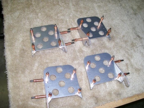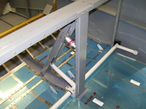 Picked up my anodizing today. I assembled he brake pedals and they are ready for riveting. Clecoed the anodized side rails on for riveting later. All the flap actuator parts were painted yesterday and are now dry so I started assembly. Riveted all the brackets on then bolted the motor in. Screwed it all in and then match drilled the side covers. Pulled the rear brace back out and added the nut plates. The flap actuator is finished. I just need to alodine and paint the side covers.