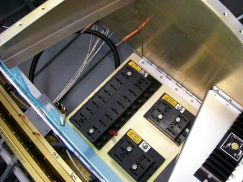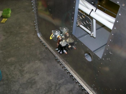 Worked on firewall parts. Heater valve, battery solenoid, starter solenoid, battery box and recess. After drilling holes and attaching plate nuts I attached all these parts. Then I dimpled and cleaned the recess, Prosealed and riveted. I sealed up all the cracks and holes with Proseal. Drilled hole for the heater valvs and Prosealed and bolted into place. I had stopped by Ace Hardwarere and bought stainless screws for attaching the fuse blocks. I finished up the hinged panel by drilling the hinge, Alodining and riveting into place.