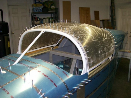Worked on getting the side rails screwed down. I stalled the small spacer at the aft in. Finished the rear frame pin blocks and screwed them down. Started work on the side skirts. Canopy now opens and closes pretty good.